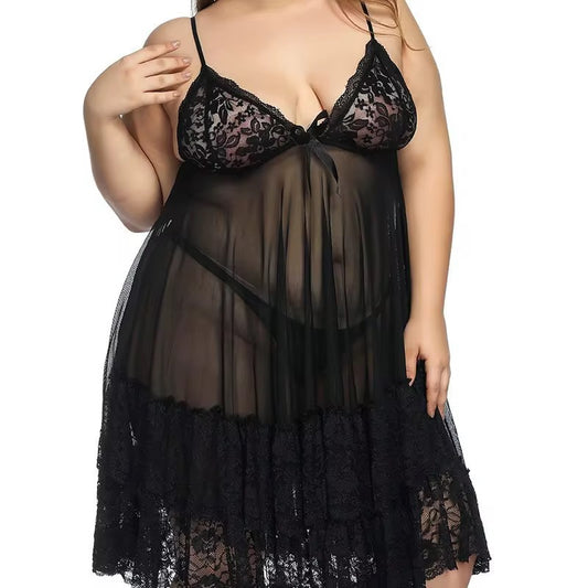 Intimate Lingerie Plus Size Lace Detail Mesh Nighty