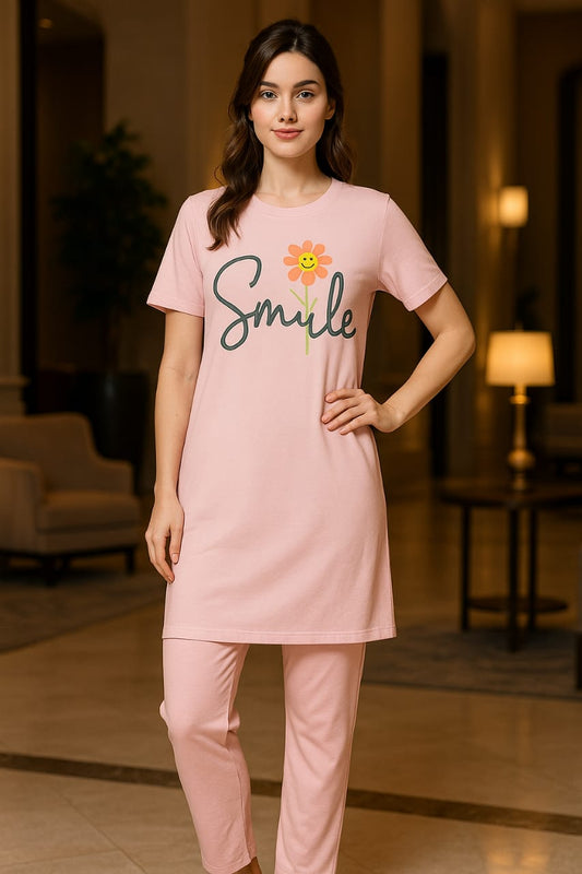 Intimate Night Dress Pink “Sweet Heart” Cotton Sleepwear Set – Cozy Women’s Nightdress with Pants