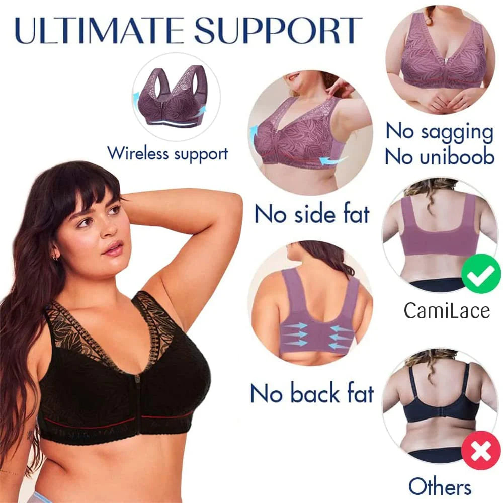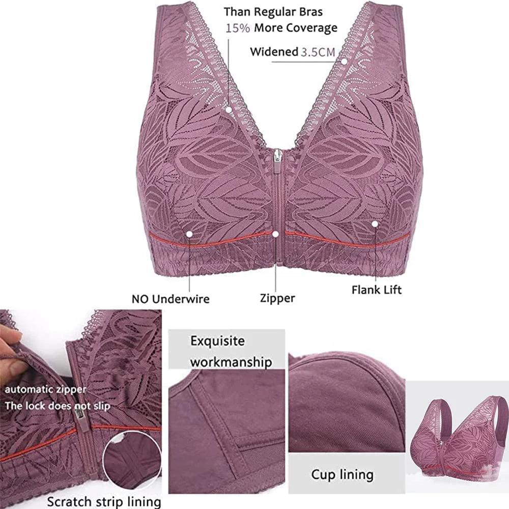 Intimate Plus Size Front Open Zip Bra Cover Back Fat Soft Padded Full Coverage Bra